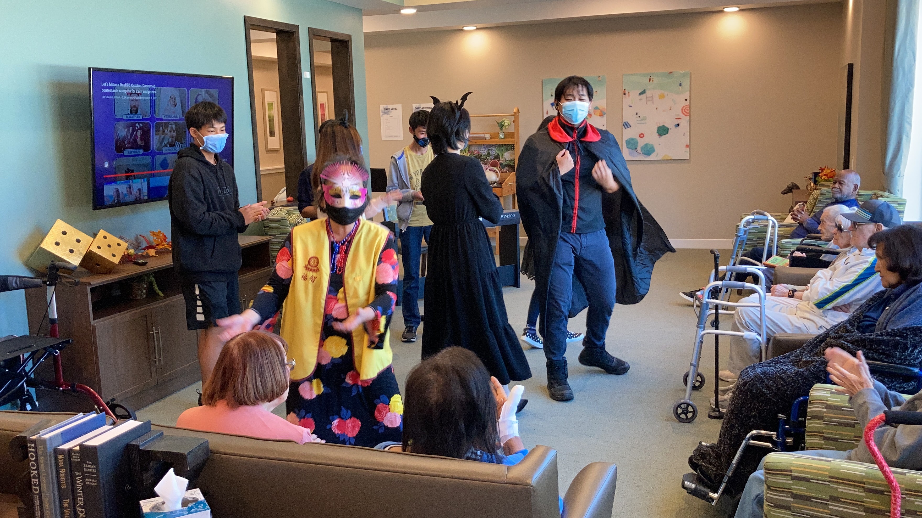 Every month, we host performances for our seniors in senior facilities and homes. Each hour, we spend time providing entertaining performances sharing a lovely bond with seniors together. This unique opportunity showcases our talent, bringing forth much laughter and delight among one another. And each quarter, we donate collected supplies such as toys and puzzles to senior care facilities across the South Bay!